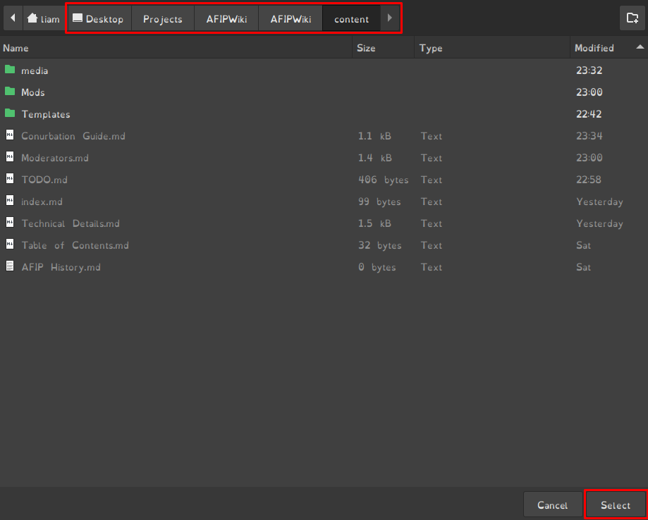 - Navigate to the folder called “content”. This should be inside the repository you cloned. the path should look something like this.