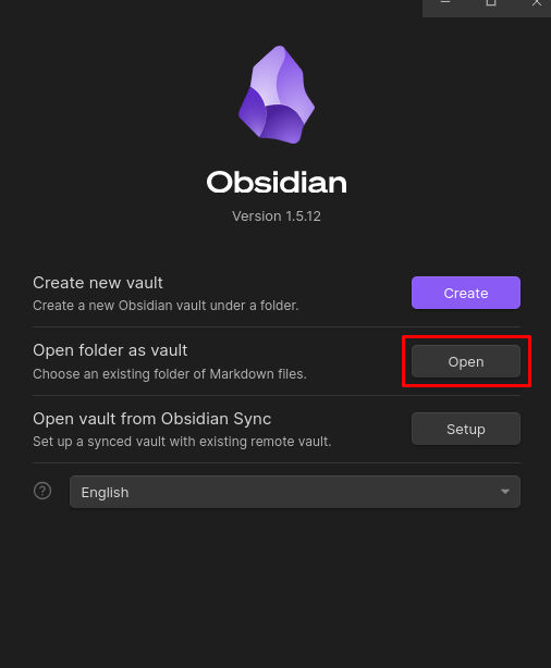 - Open Obsidian and open a folder as a vault.